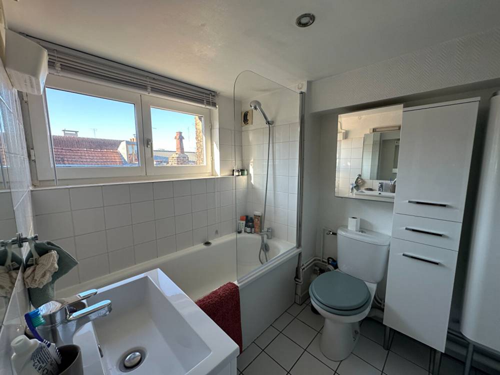 Rue Jean-Jacques Rousseau, T2 de 46.30m2 au 4e étage avec ascenseur. L'appartement est meublé et il comprend un séjour parqueté avec cuisine équipée, une grande chambre avec salle de bain attenante, WC.