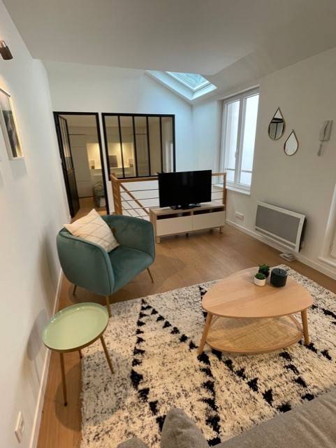 Proximité Beaux Arts, à 5min à pied du métro République, au calme, appartement/maison de 45.18m2 comprenant entrée avec rangements, salle à manger avec cuisine entièrement équipée, salle de bain et wc. L'étage comprend un salon et une belle chambre de 12m2. L'appartement dispose d'une cour privative de 9m2 et d'un balcon de 3m2.