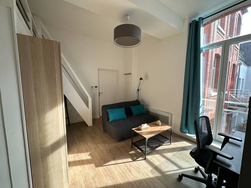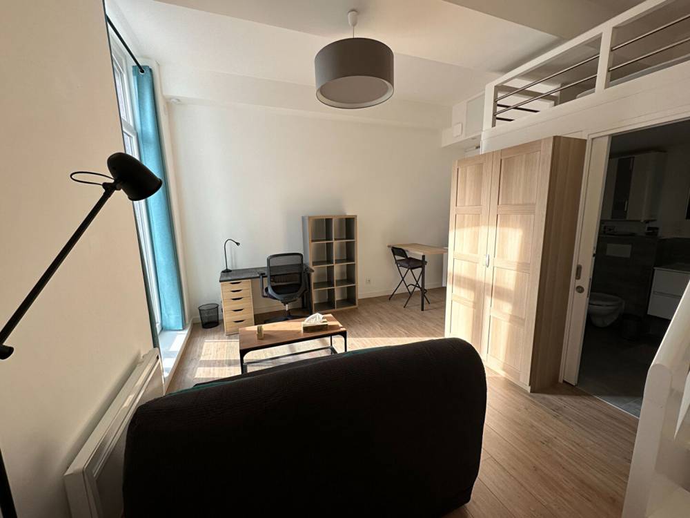 L'appartement comprend une grande pièce à vivre avec cuisine équipée, une salle de bain avec WC, une mezzanine servant de coin de couchage. Il est situé rue Colbert, à 10 min à pied de la Catho, 5 min à pied du métro. Commerces à proximité. Faibles charges. Au calme.