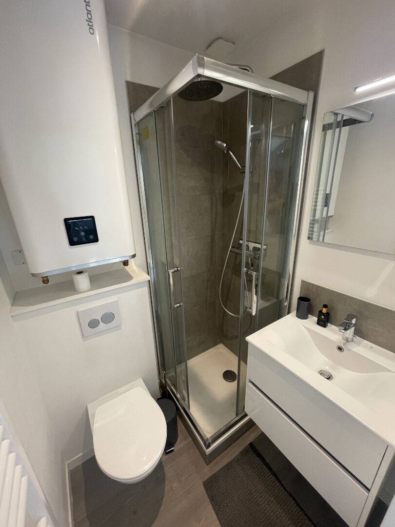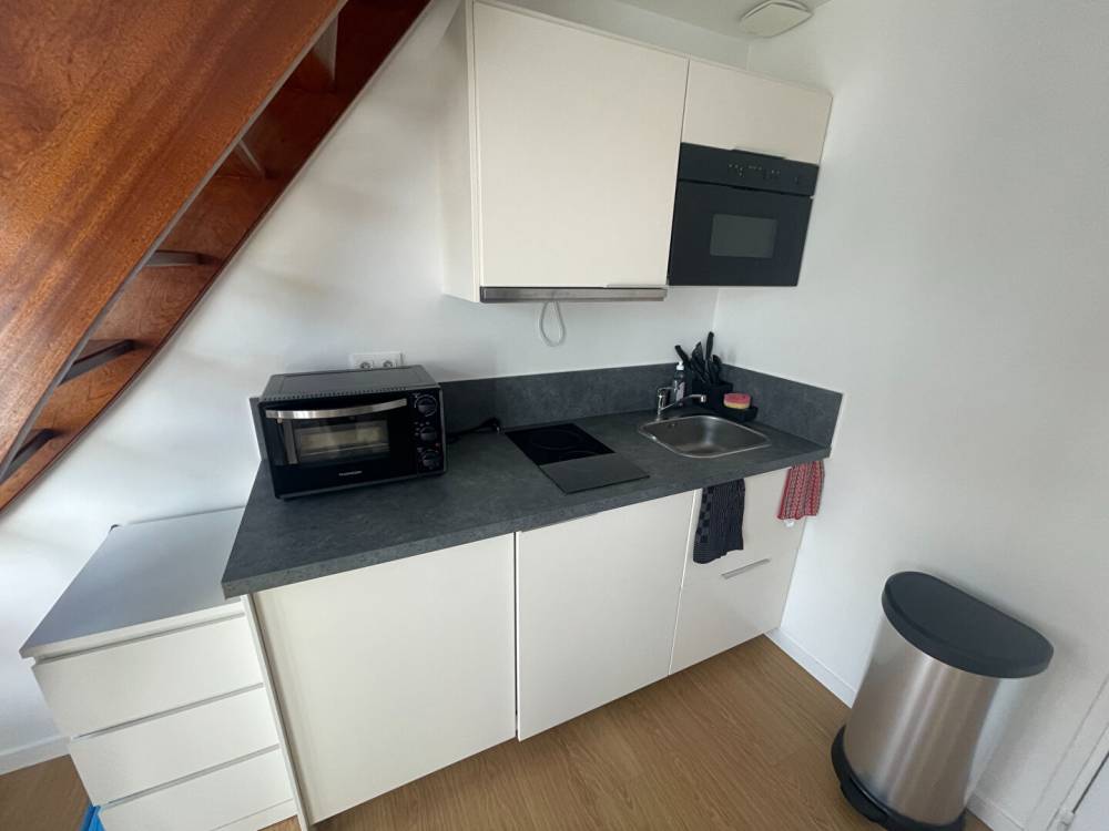 L'appartement offre une superficie de 24 m² loi Carrez (29 m² au sol) et se compose d'un séjour lumineux avec cuisine ouverte donnant sur l'arrière, sans vis-à-vis et avec une agréable vue sur jardin. A l'étage, l'espace mezzanine propose une salle de douche avec WC, un coin nuit confortable ainsi qu'un dressing bien pensé.