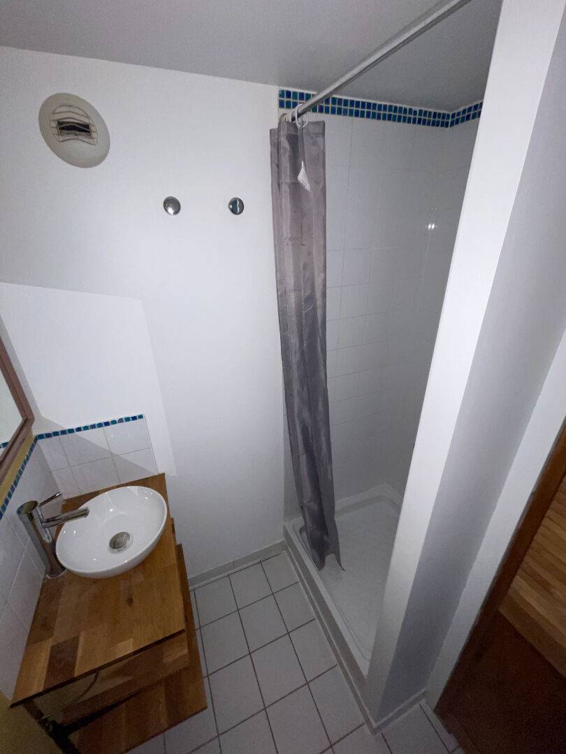 L'appartement se compose d'un sas d'entrée desservant une salle de douche avec WC ainsi qu'un séjour lumineux avec kitchenette. Ses deux fenêtres exposées plein sud offrent une belle luminosité tout au long de la journée.