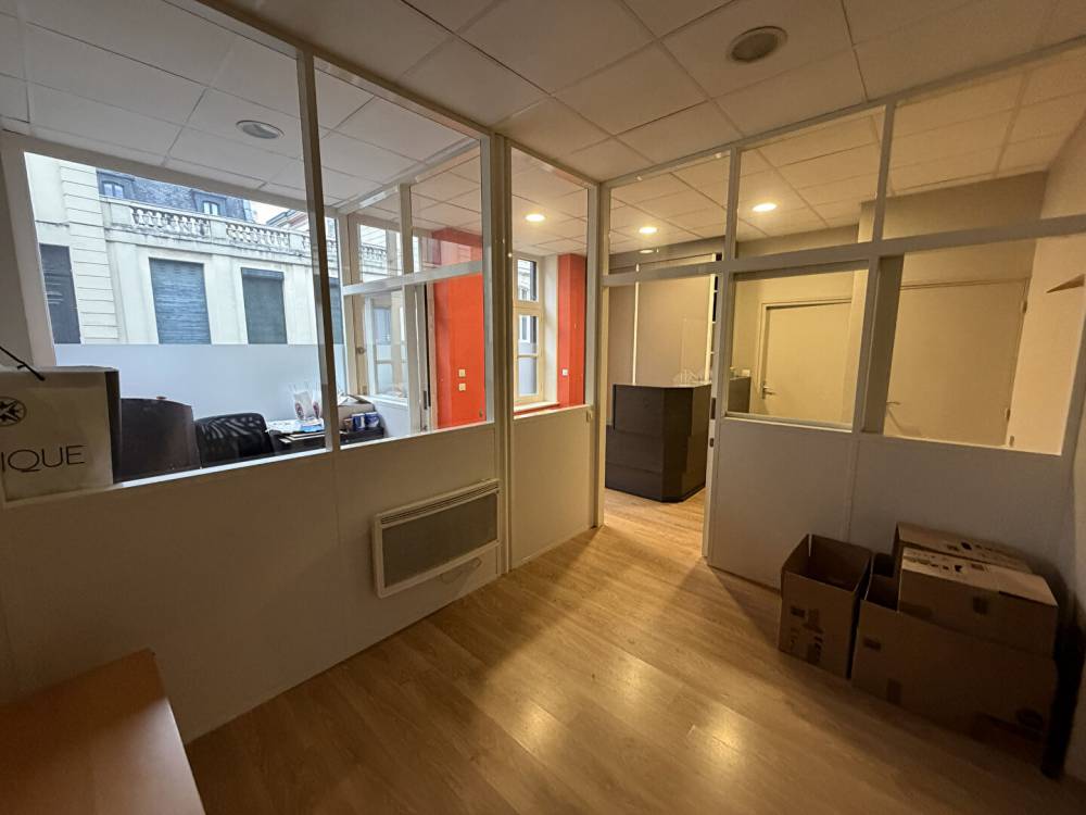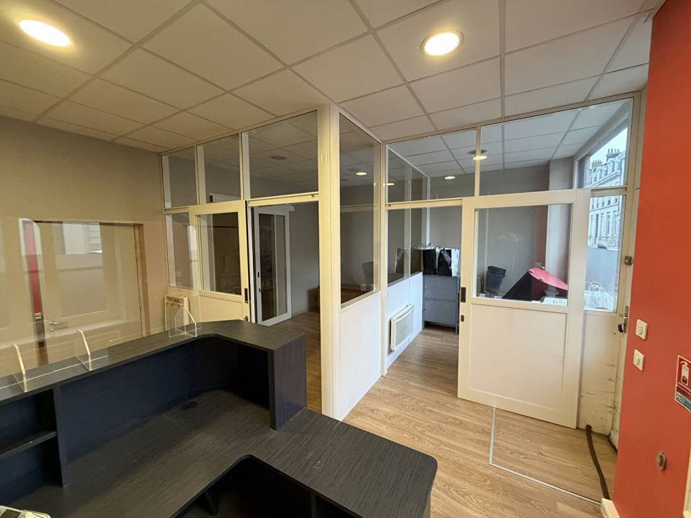 Le rez-de-chaussée accueille un vaste bureau d'environ 40 m² bénéficiant d'une double entrée indépendante. Cette configuration permet de dissocier parfaitement la partie professionnelle de la partie habitation. Un sas équipé d'un escalier central dessert les étages supérieurs et permet d'éviter tout espace commun, garantissant ainsi l'intimité des occupants sans passage de clientèle dans l'habitation. Ce niveau dispose également d'une grande cave saine accessible directement depuis le local, offrant un espace de stockage particulièrement appréciable. Cet espace professionnel peut facilement être transformé en surface habitable selon les besoins du futur acquéreur.